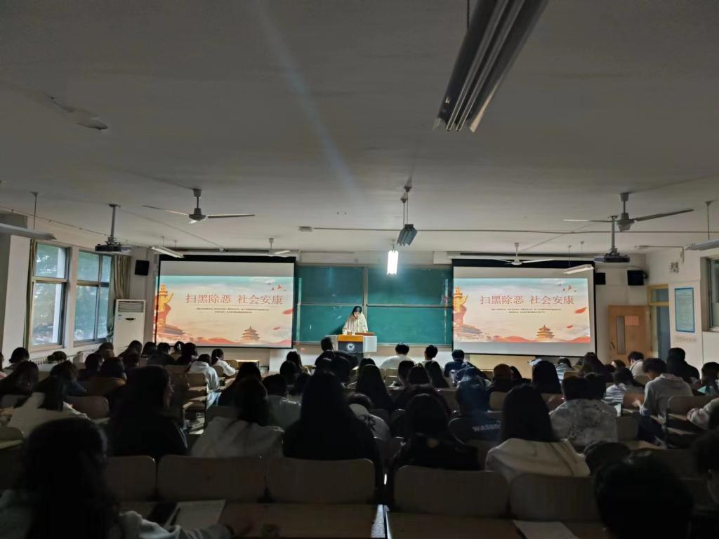 活动伊始,通过观看扫黑除恶的视频使同学们了解到深入学习扫黑除恶的背景、重要意义和本次活动的目标任务等内容,让广大同学深刻认识开展扫黑除恶专项斗争的重要性。随后,宣讲人员上台宣讲,讲解了扫黑除恶工作的内容和意义,呼吁广大同学积极响应扫黑除恶行动。活动最后,通过提问、抢答的方式与同学们互动,通过问答的形式了解扫黑除恶的内容、作用。