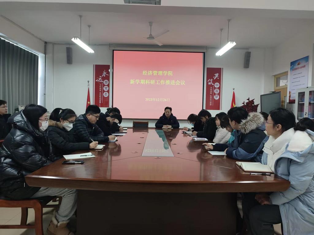 12月26日,经济管理管理学院召开新学期科研工作推进会议。经管学院副经理张鹏,学科带头人、博士教师参加会议。