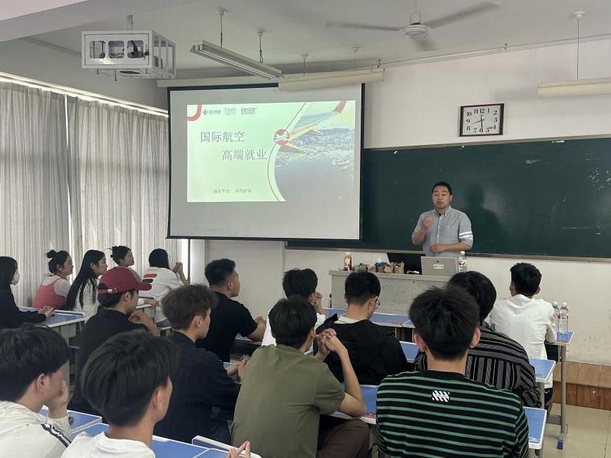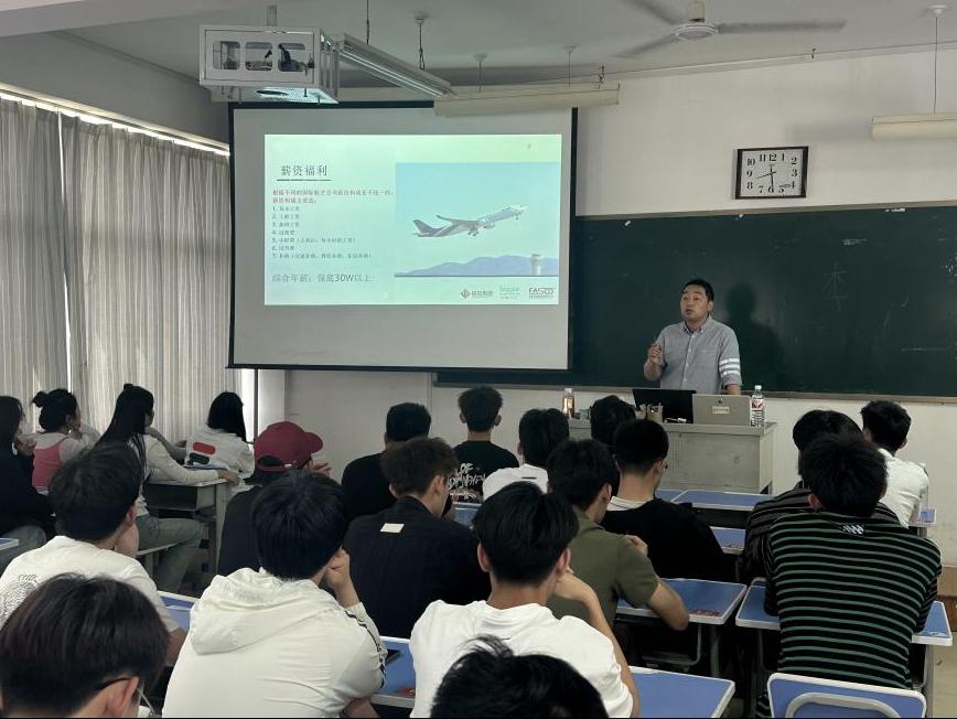 宣讲会上, 企业代表首先对本企业的发展现状进行讲解,分别说明了本企业在招职位、岗位分析、企业工作环境、员工薪资待遇等方面的情况,并提出了工作职务及任职要求,便于员工对未来职业发展作出规划。随后,企业代表通过国内外航空优势进行对比,阐明了人才培养后应聘的成功率,增强了同学们的信心。最后,企业单位对同学们提出的问题进行耐心地解答,使同学们充分了解到企业对人才的具体需求。