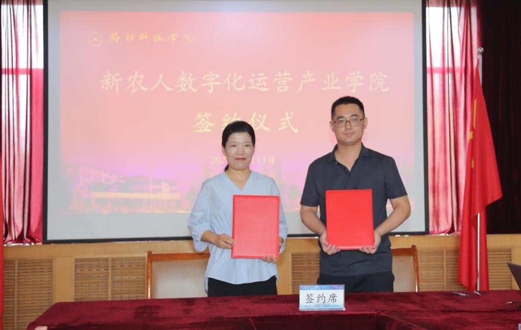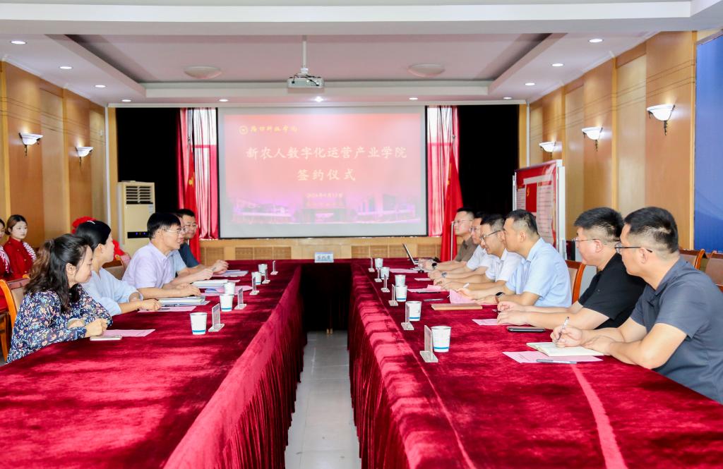 王海涛会长与张友祥副董事长为新农人数字化运营产业学院揭牌