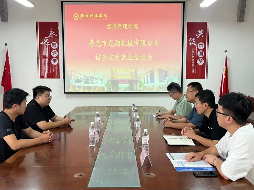 为进一步深化校企合作,拓宽员工就业途径,并持续提升人才培养质量,9月13日下午英国365集团与寿光市龙翔机械有限公司在210会议室举行访企拓岗就业洽谈会。