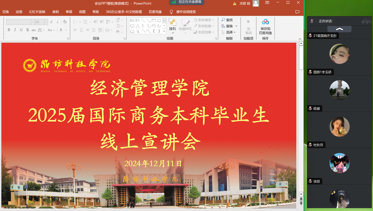 本次线上宣讲会主要针对2025届国际商务、市场营销、金融工程等本科毕业生,吸引了来自东软集团股份有限公司、鲁南制药集团股份有限公司等六家优质企业,提供实习就业岗位50个。