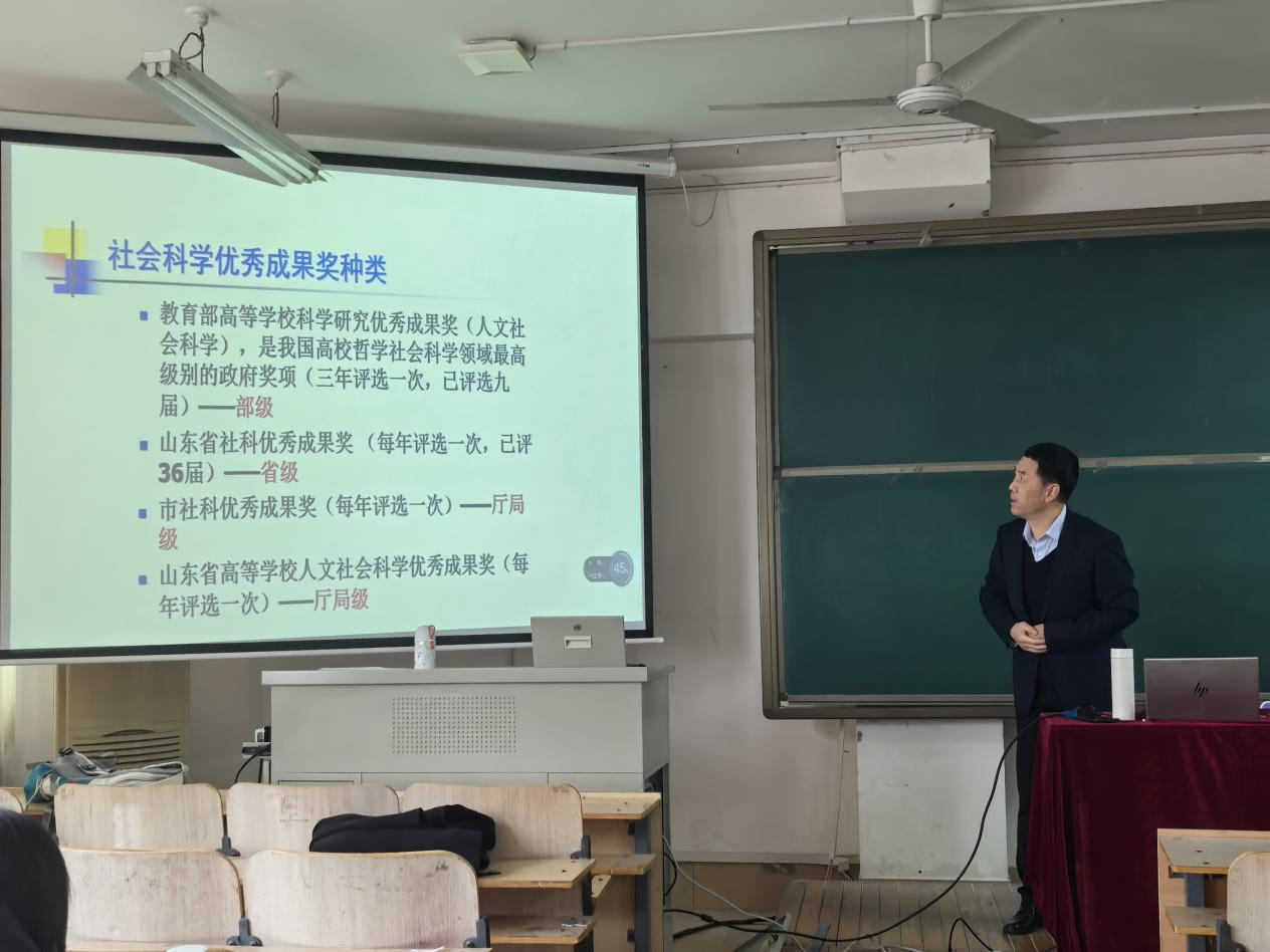 为进一步提升公司教师科研能力和申报水平,同时也让教师们更直观有效地了解科研成果奖申报的评选规则。英国365集团于3月6日在421教室举办关于社会科学优秀成果奖申报的专题讲座,特邀张同全教授主讲,由孙翠萍副经理主持,学院教师参与。